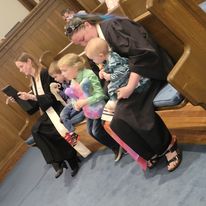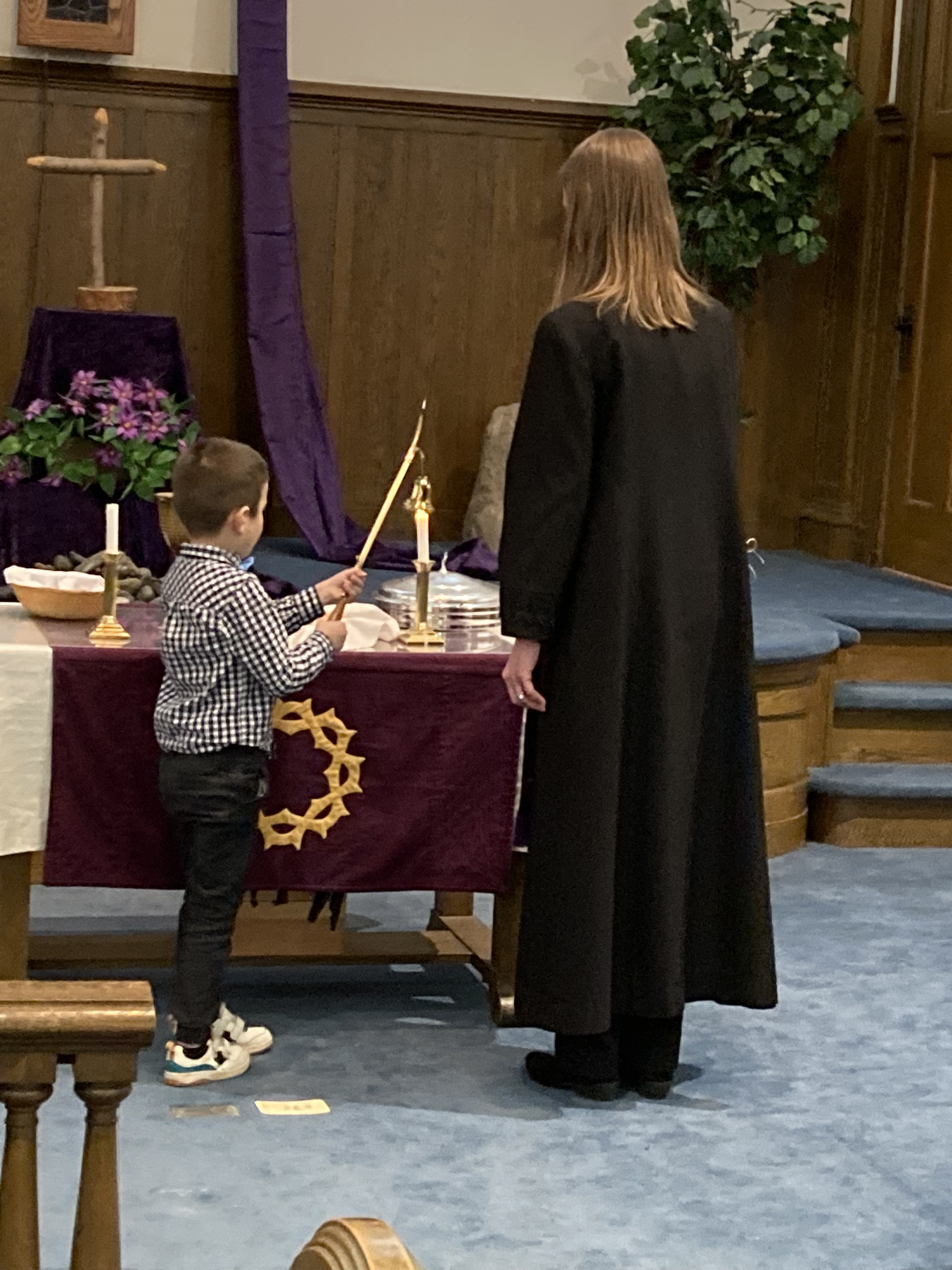We strive to develop each child’s faith and spiritual life by actively engaging them in our worship life together, whether by carrying in the Light of Christ to light our candles at the start of service, participating in our Time with the Children, reading scripture, or helping with communion. As we discover each child’s unique personality and gifts, we try to find ways for them to share that within our community.